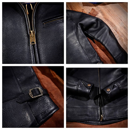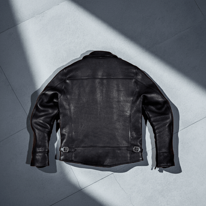 Crafted for the modern rider and the discerning style enthusiast, this timeless leather jacket combines rugged durability with refined sophistication. Available in premium Black grain cowhide (1.4mm), black horsehide (1.5mm), 1.3mm natural and yellow-brown horsehide, and 2mm purple cowhide, each piece is built to last while developing a rich patina over time.
