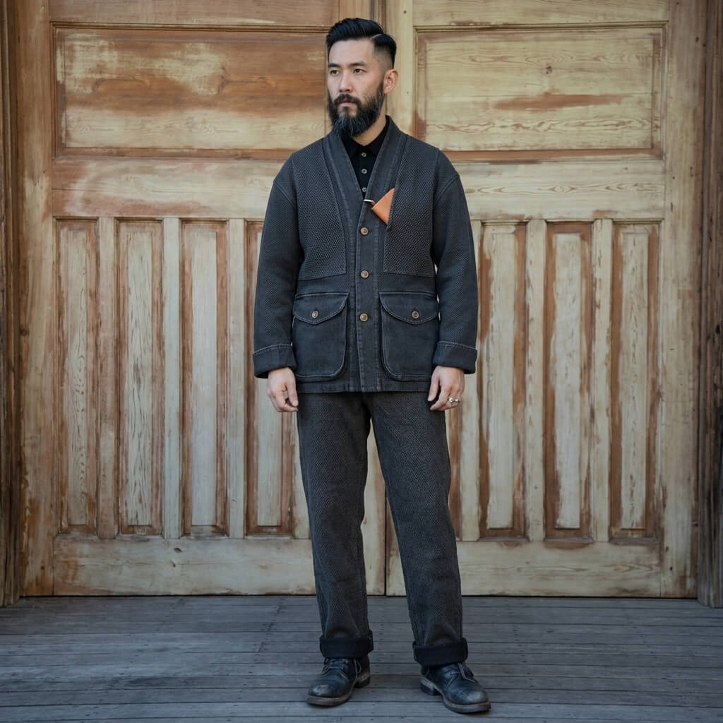 Inspired by the iconic kendogi design, this jacket features a button-front closure and two large buttoned pockets below, emanating timeless charm and cultural significance. Experience the perfect fusion of age-old craftsmanship and modern sartorial brilliance.