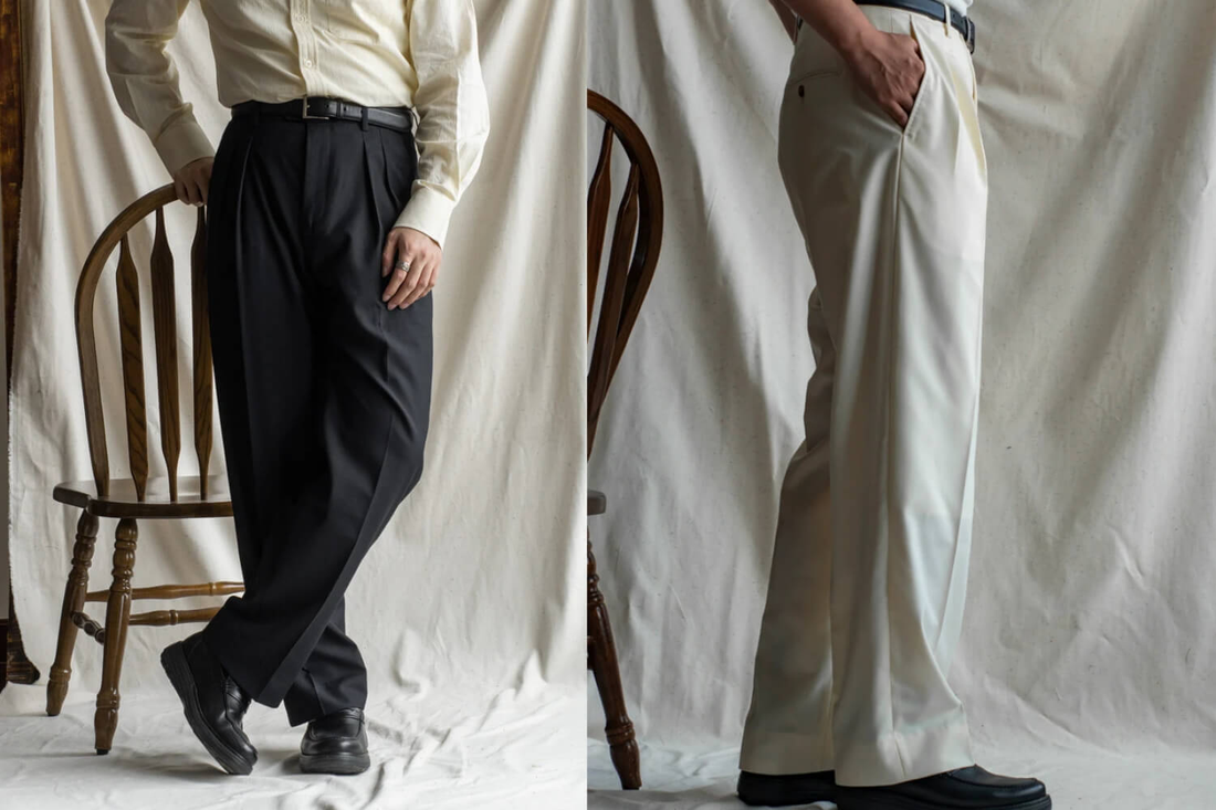 Discover classic flat-front and pleated designs in versatile shades from charcoal to navy. Each pair features precise cuts, clean lines, and functional details such as belt loops and side adjusters for a flawless fit.