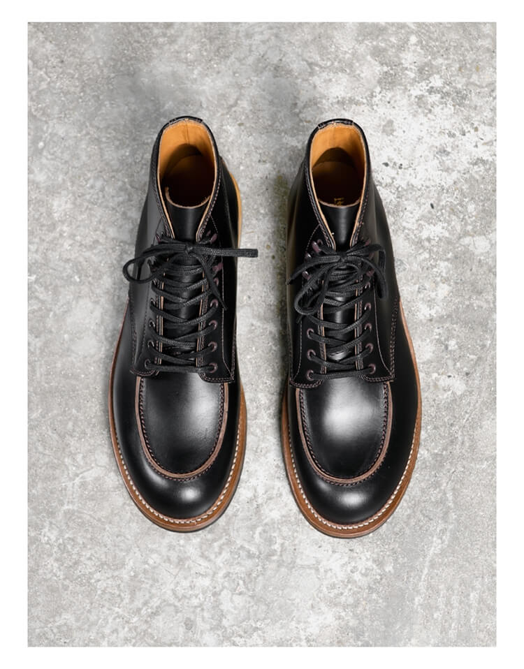 Introducing our Moc Toe Boots, crafted from premium black tea core cowhide for a sleek, rugged look....