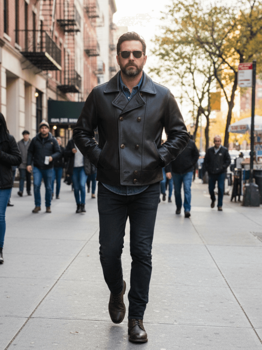 Crafted from robust 1.4mm cowhide, this double-breasted leather jacket is built to last and develop a unique patina over time. It features a classic notch lapel and a relaxed fit design, offering both timeless style and superior comfort for all-day wear.