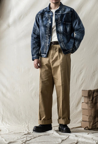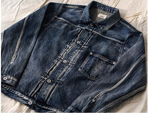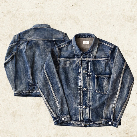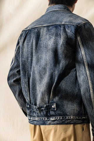 Discover the Type I S506XX Denim Jacket, a rugged workwear classic. Available in original 15oz denim or washed distressed finish, this jacket features a single chest pocket, button closure, and a brass buckle back. Elevate your style with timeless, durable craftsmanship.