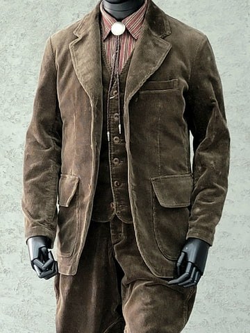Cette veste en velours côtelé pour homme apporte un style rétro américain classique avec son tissu en coton 450 g/m², sa doublure 80 % coton/20 % polyester et sa fermeture polyvalente à 3 boutons. Les détails de conception comprennent un revers cranté, une poche de poitrine, deux poches à rabat inférieures pour un rangement pratique et une poche intérieure. Son tissu en velours côtelé sur mesure confère un caractère vintage tandis que la doublure en mélange de coton offre un port confortable. Qu'elle soit habillée ou non, cette veste offre un attrait rétro.
