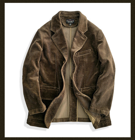 Cette veste en velours côtelé pour homme apporte un style rétro américain classique avec son tissu en...