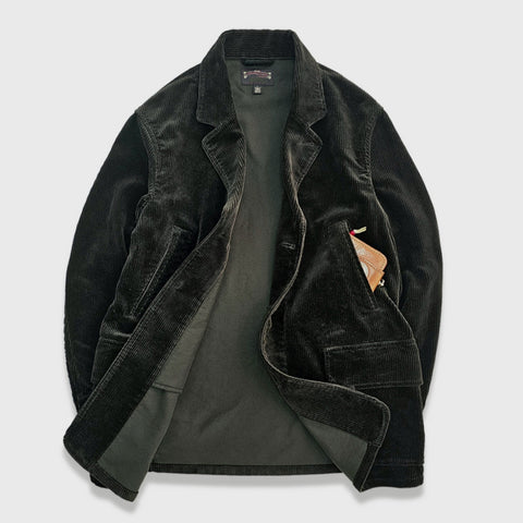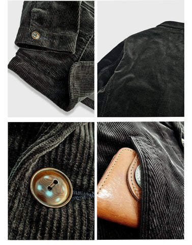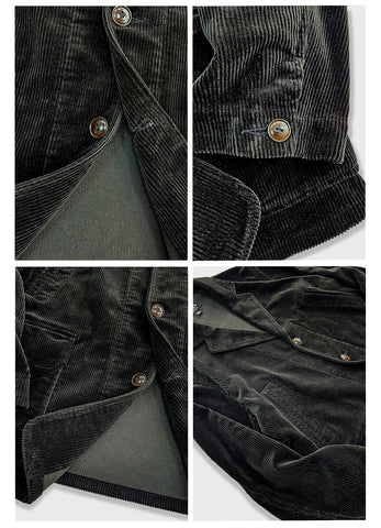 Embark on your next adventure with our Men's Black Corduroy Safari Jacket. Crafted from 100% cotton, this rugged yet stylish piece offers both comfort and durability. The classic notch lapel adds a touch of sophistication, while four spacious pockets—two angled on the chest and two larger ones at the bottom—provide ample storage for all your essentials. The button closure ensures a secure fit and allows for easy layering.