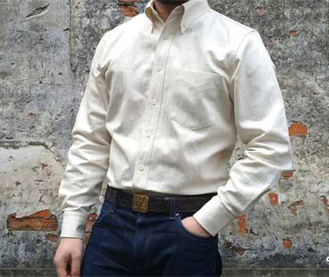 Rehaussez votre garde-robe avec cette chemise à chevrons pour homme. Fabriquée à partir de 55 % de coton et de 45 % de lin, elle présente un col boutonné, une poche poitrine et un style preppy IVY classique dans un tissu haute densité robuste de 7 oz.