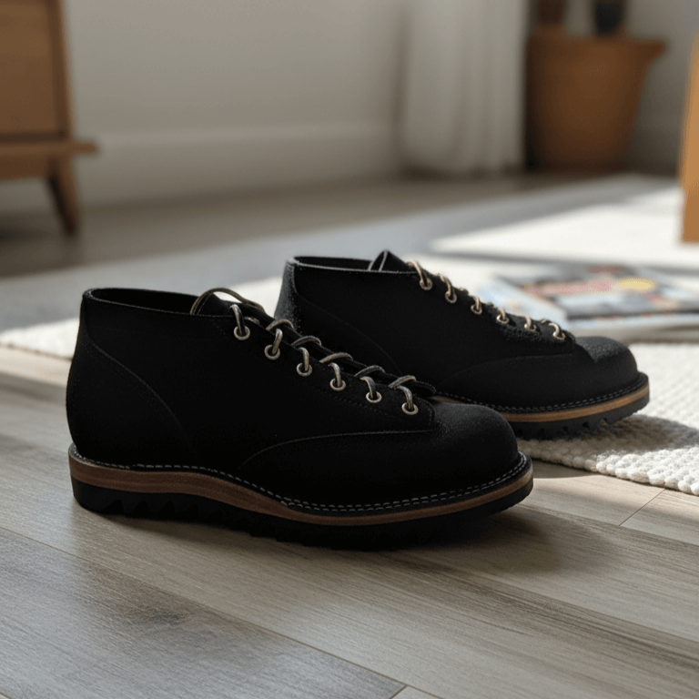 Crafted from premium local suede in three versatile shades (beige, black, and coffee), these low-top monkey boots blend durability with effortless style. The lace-to-toe design, featuring six rows of nickel eyelets, ensures a secure fit, while the stitch-down construction and Vibram Ripple sole deliver rugged traction and long-lasting wear.