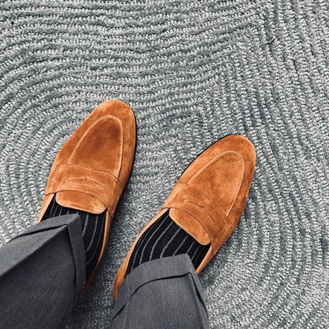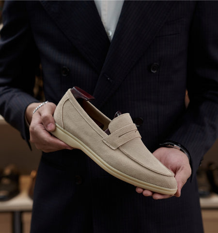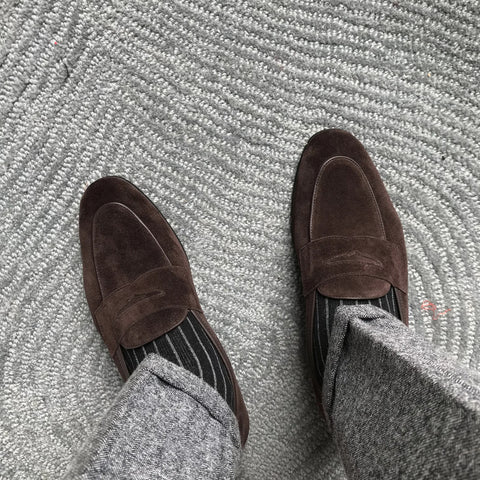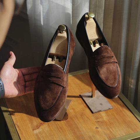 Fabriqués en daim de vachette de qualité supérieure, ces mocassins pour homme élégants apportent une touche de sophistication aux looks décontractés chics. La tige en daim souple est dotée de la bride emblématique Penny Keeper sur la tige. Avec une semelle en caoutchouc durable et une semelle intérieure et une doublure en cuir de porc, ils offrent un confort durable. Parfaits pour rehausser une tenue décontractée ou ajouter de la finesse à une tenue de week-end, ces mocassins en daim de luxe apporteront une touche de raffinement et de style à votre garde-robe.