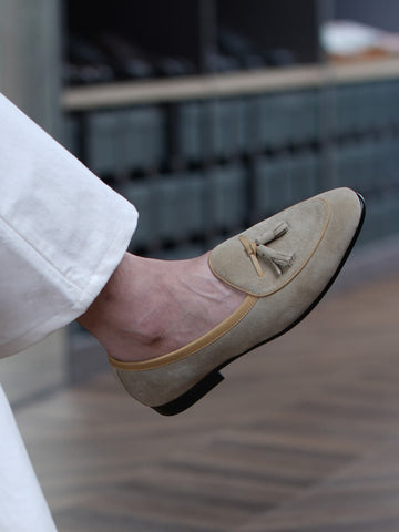 Elevate your footwear collection with these sophisticated suede tassel loafers, meticulously crafted from cowhide suede. The luxurious upper showcases a refined texture and elegant design, embodying timeless style and exceptional craftsmanship that seamlessly transitions from professional settings to sophisticated casual environments.