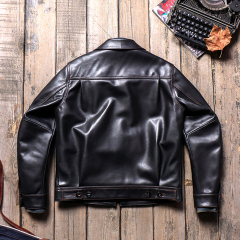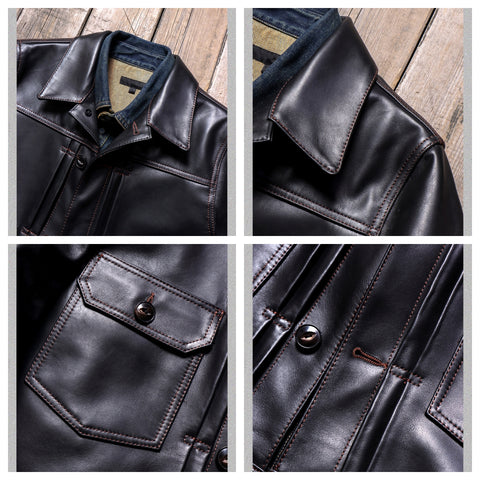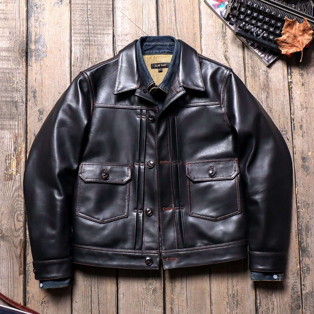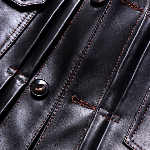 Veste en cuir noir style camionneur pour homme en cuir de vachette tanné italien à la fois...
