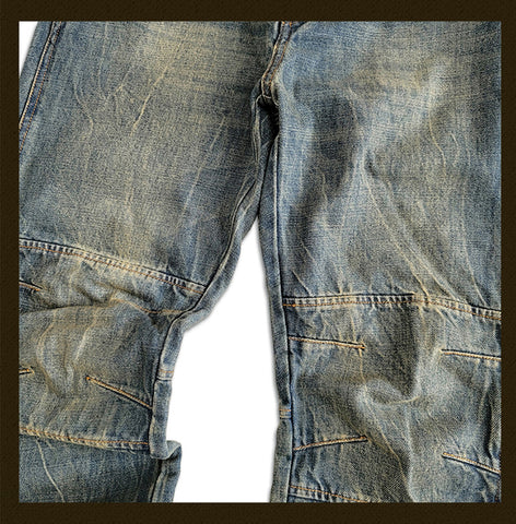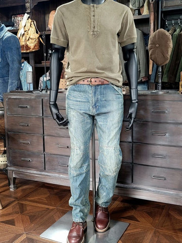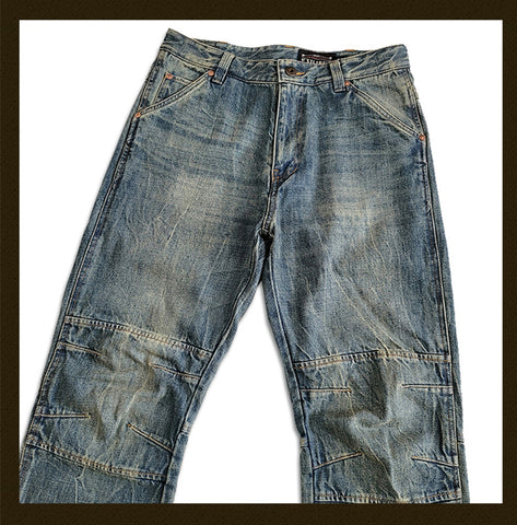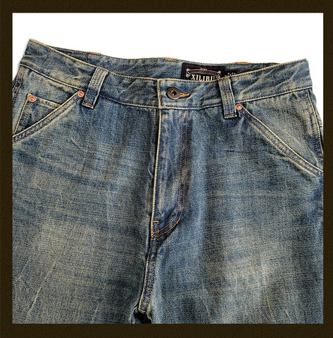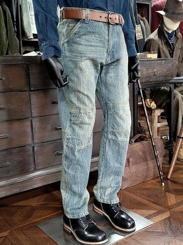 Ce jean pour homme d'inspiration vintage est fabriqué à partir d'un denim robuste de 14 oz conçu pour paraître vieilli et usé avec des moustaches uniques qui créent un look délavé vraiment unique en son genre que l'on ne trouve pas sur les jeans traditionnels. Coupé dans une coupe droite classique sur la jambe avec une taille régulière, il comporte deux poches avant inclinées, une poche intérieure pour les pièces et deux poches plaquées à l'arrière. Les moustaches confèrent à ce jean un style robuste et usé, parfait pour une ambiance vintage décontractée.
