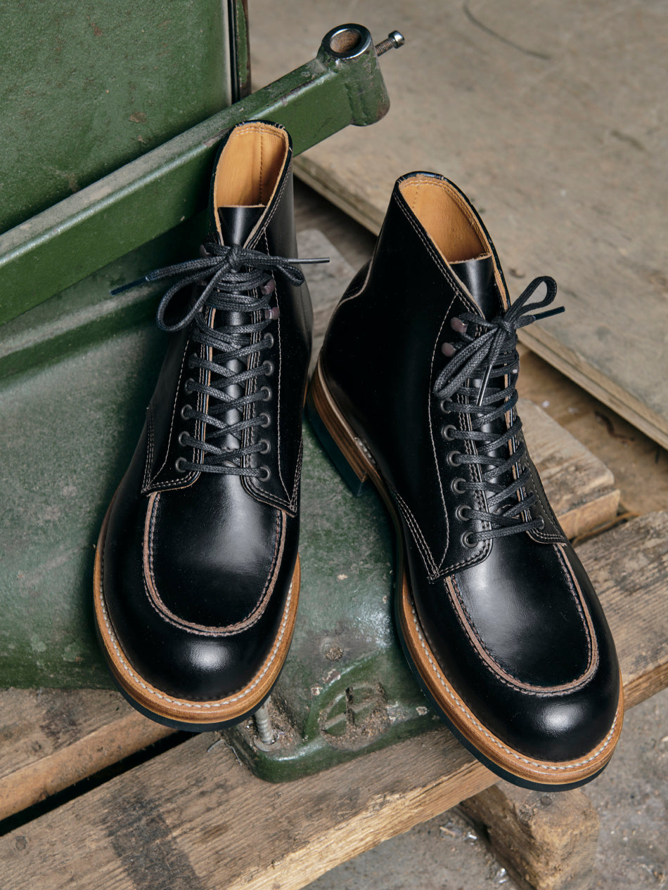 Introducing our Moc Toe Boots, crafted from premium black tea core cowhide for a sleek, rugged look....