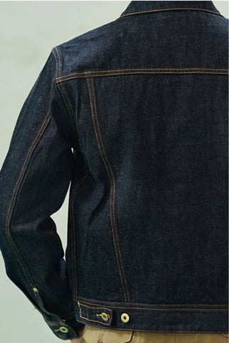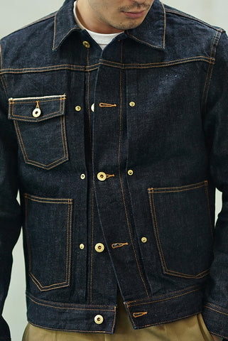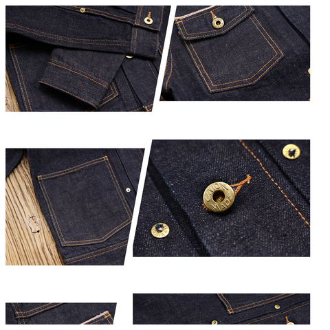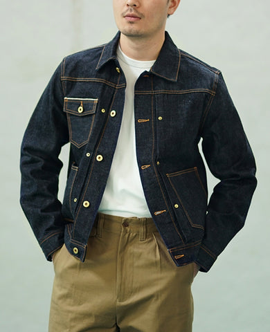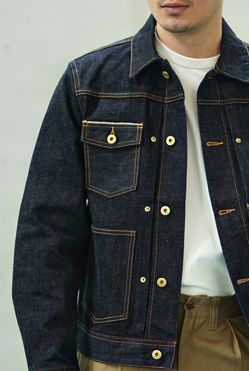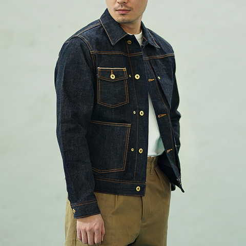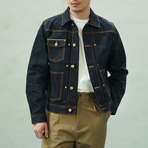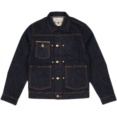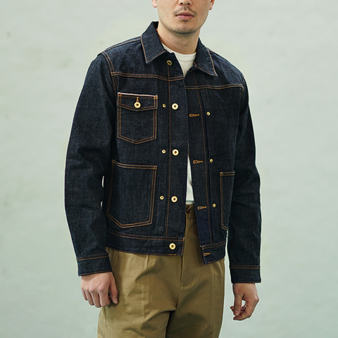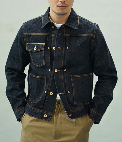 この頑丈な 17 オンスのウォッシュ加工デニム ジャケットは、真鍮ボタンとフロントの 3 つのボタン フラップ ポケットが特徴で、クラシックなスタイルです。これ以上縮まない防縮加工デニムを使用したこの丈夫なジャケットは、仕事や週末の着用に最適です。厚手のデニムと真鍮のアクセントが、ヴィンテージで着古したような外観を演出します。