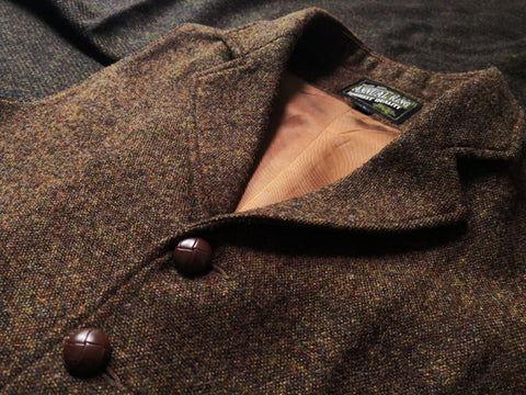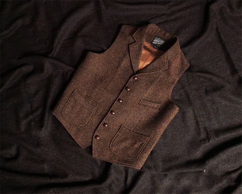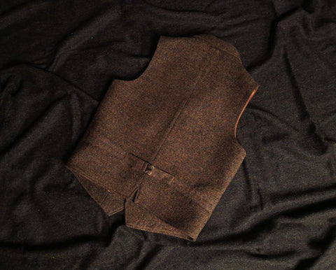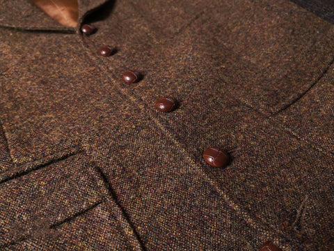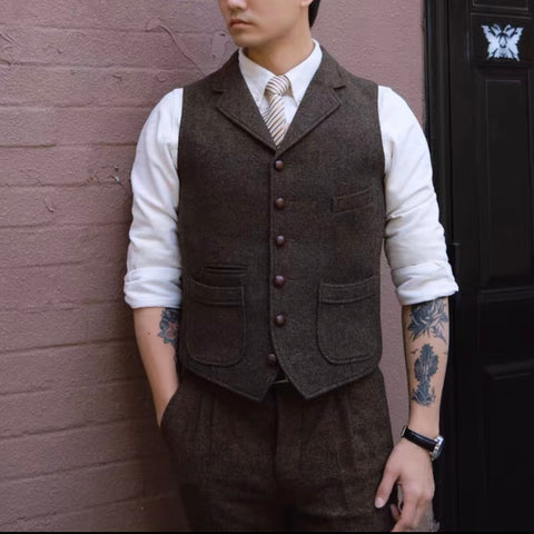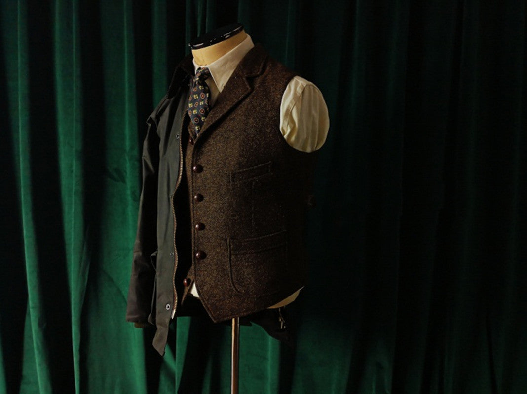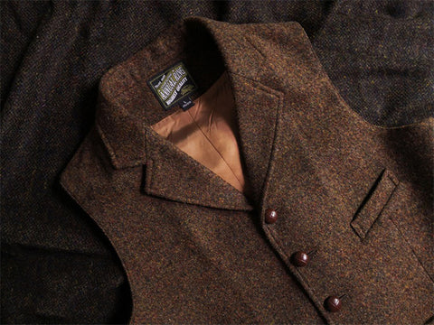 メンズ ブラウン ツイード ハンティングベスト ノッチラペル