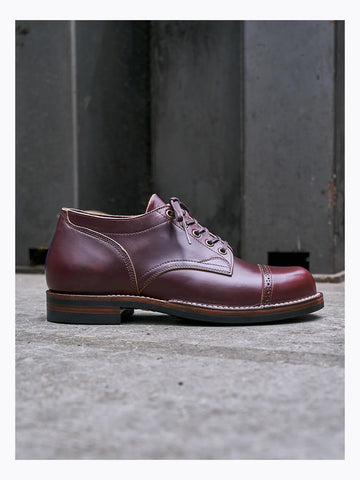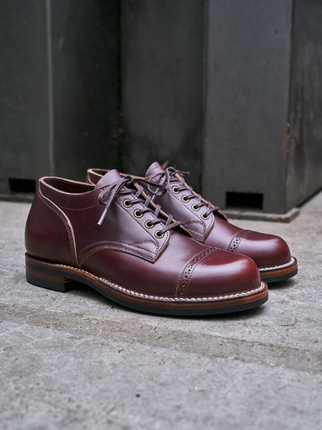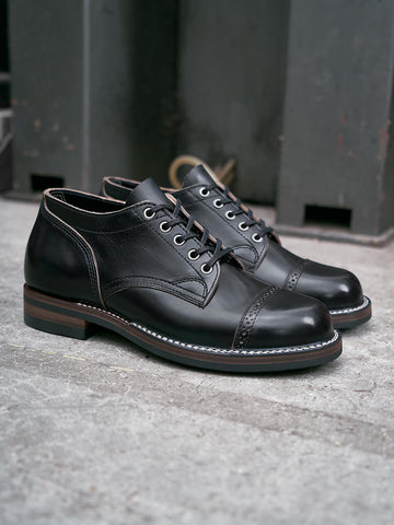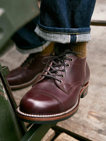 The shoes feature a robust double row stitch down construction, ensuring exceptional durability and structural integrity. A luxurious vegetable-tanned cowhide footbed and insole provide unparalleled comfort, while the soft grain calfskin lining offers a breathable, adaptive interior. The Vibram 435 rubber sole delivers superior traction and support, complemented by strategic cork filling and integrated arch support for all-day comfort.