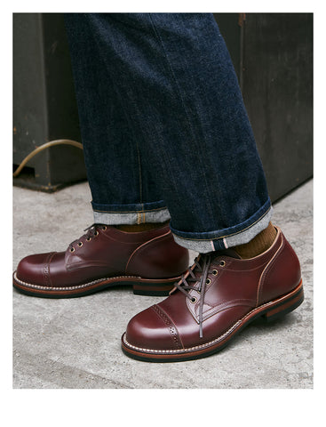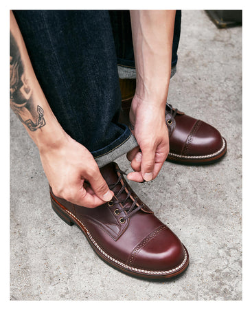 Meticulously crafted for the modern gentleman, these men's derby shoes represent the pinnacle of artisanal footwear. Constructed from premium pull-up cowhide leather, these shoes embody a perfect balance of timeless design and contemporary elegance. Available in classic black and rich burgundy, each pair tells a story of exceptional craftsmanship and refined taste.