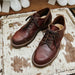 Men's Derby Shoes exemplify exceptional leather craftsmanship, utilizing premium Horween leather in waxed flesh CXL and calico flesh suede. Available in rich colorways of black berry, brown, black and tobacco accents, these shoes feature a distinctive leather treatment where the flesh side is meticulously finished while preserving the raw, natural grain side.