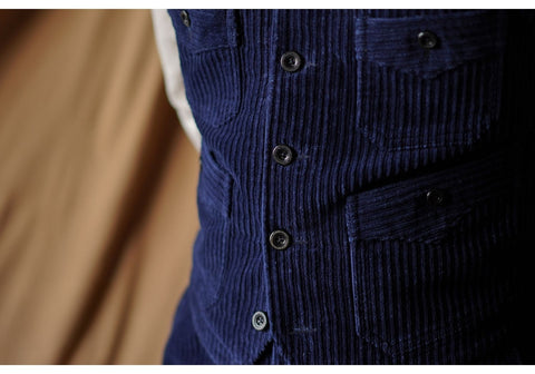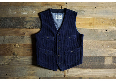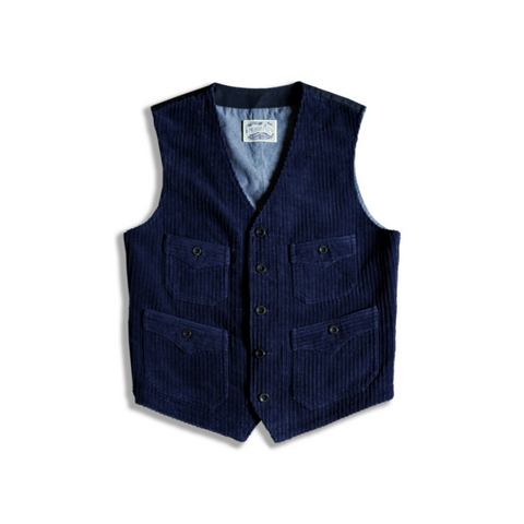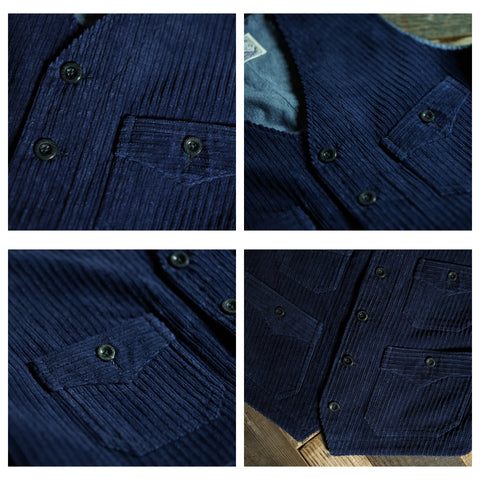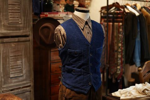 メンズ インディゴ染め Vネック コーデュロイ ベスト