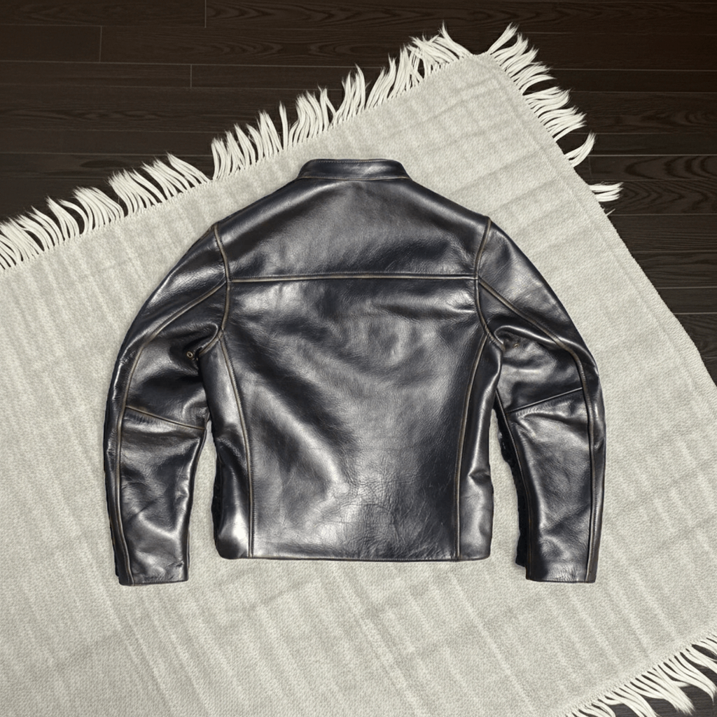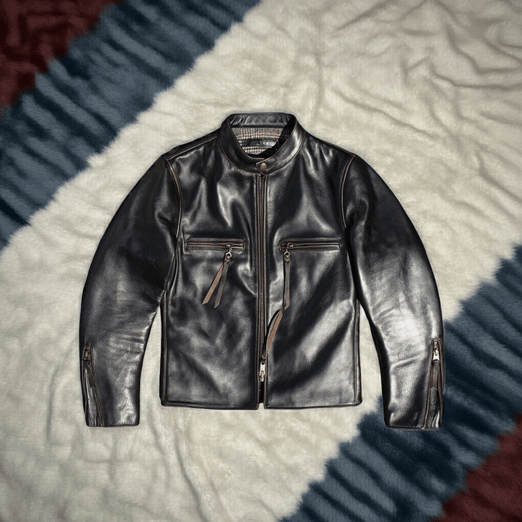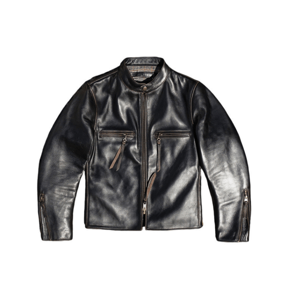 J-100 メンズ モーターサイクル レザー ジャケットは、高級感のあるブラック ティー コア ホースハイド レザーで作られており、頑丈な外観です。ジッパーと裏地にはブラックとレッドのアクセント カラーが使われています。スタンド カラー、ジッパー開閉、ジッパー付き胸ポケットを備えたこのジャケットは、モーターサイクル愛好家にスタイルと機能性の両方を提供します。ティー コア ホースハイド レザーは耐久性があり、フィットした形状によりライディング中の動きやすさも確保されています。