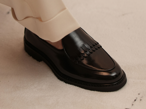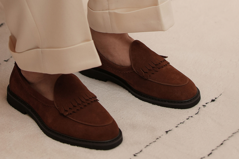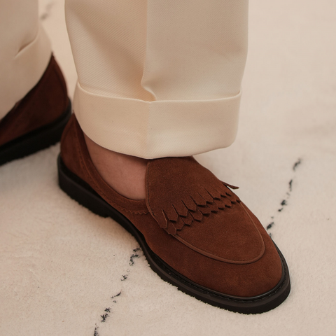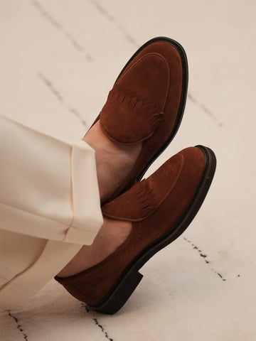 洗練されたスタイルと快適さが融合。なめらかな黒の牛革またはリッチなブラウンのスエードからお選びいただけます。高級感のあるレザーのインソール、トラクションのための耐久性のあるラバーソール、洗練されたシルエットの控えめな 3 cm ヒールが特徴です。特徴的なフリンジ (偽のタン) の装飾が、センスの良さをプラスします。カジュアルなスタイルにもセミフォーマルなスタイルにも、気取らないエレガンスを添えて格上げするのに最適です。