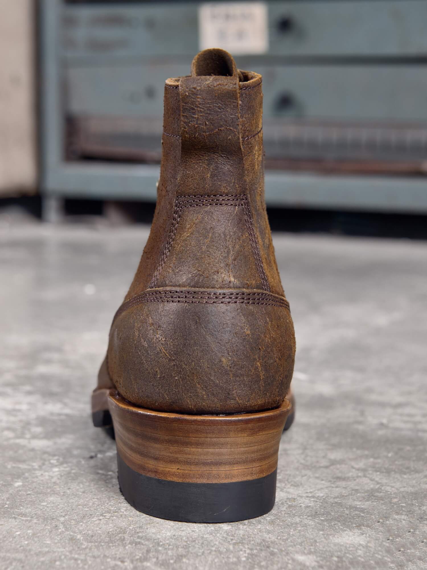 • Natural Character & Finish: Each boot showcases the leather's inherent markings, enhanced by a hand-blended antique contrast under a recoverable wax blend. This creates a stunning, deep marbled aesthetic that evolves with wear and can be refreshed by burnishing.