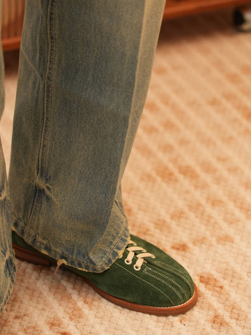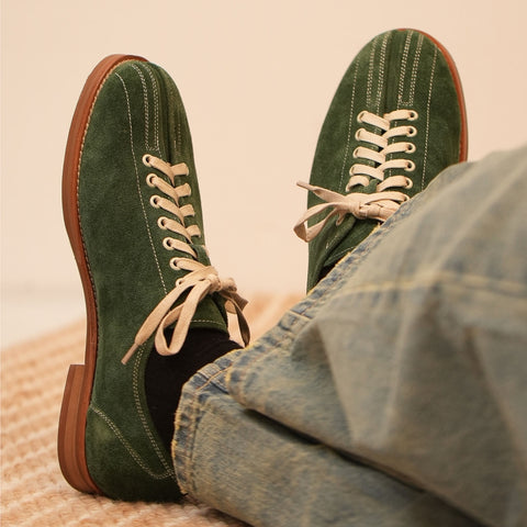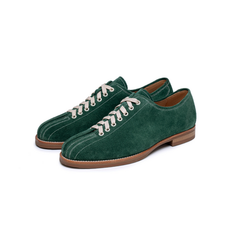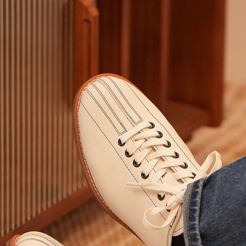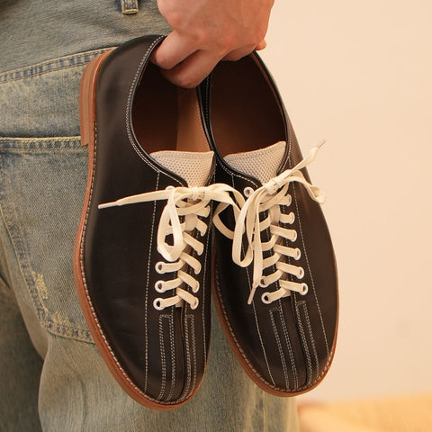 クラシックなメンズ ボーリング シューズ - 牛革アッパー、本革インソール。耐久性のあるラバーソール。3 色: グリーン、ブラック、ホワイト。レースアップ デザイン。ヒールの高さ 3 cm。ビンテージ ボーリング スタイル。通気性のあるレザー。滑りにくいトラクション。快適なクッション インソール。ボーリング場やストリート向けのレトロ ファッション スニーカー。