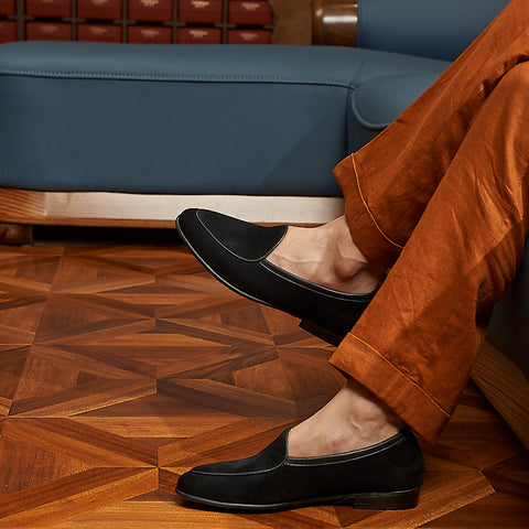 贅沢なシープスキンスエードのアッパーと柔らかいレザーのインソールが組み合わさり、一日中快適に履けます。耐久性のあるラバーソールが確実なトラクションを提供します。洗練されたブラック、リッチブラウン、または温かみのあるコーヒーからお選びください。これらのスマートなビジネスローファーは、あなたのプロフェッショナルなスタイルを楽々と高めます。