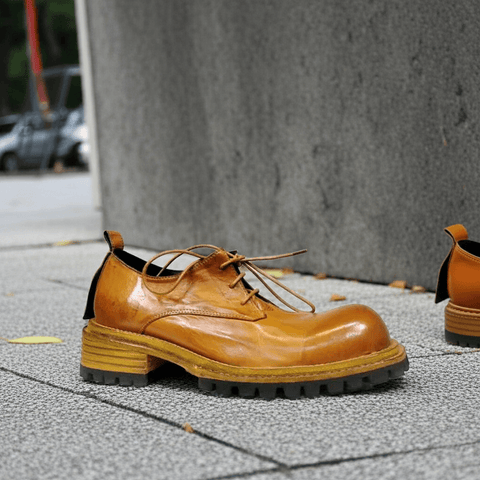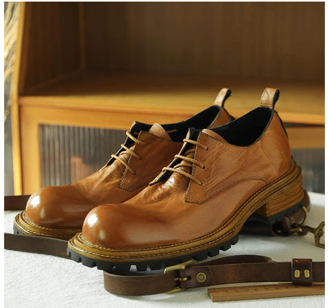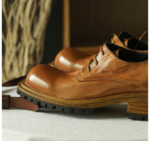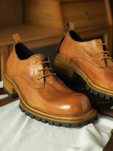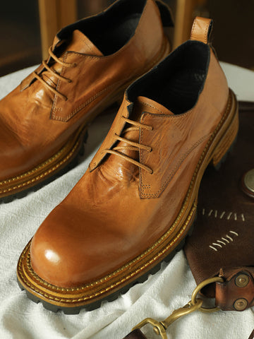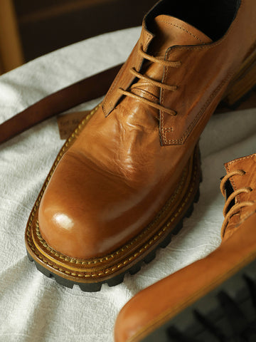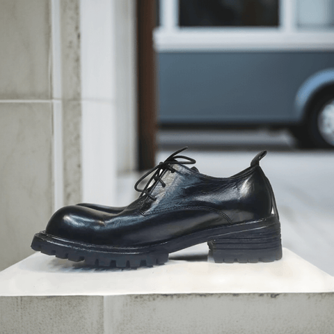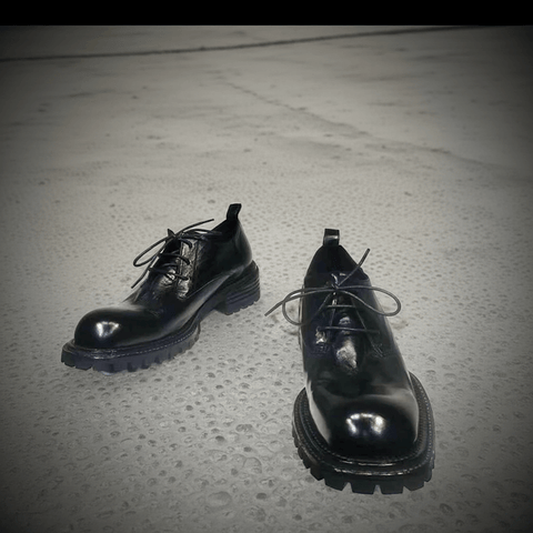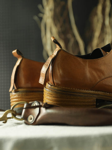 メンズ ダービー シューズ。高級ホースハイド アッパーのブラックまたはライトブラウン。ビンテージ スクエア トゥ シルエット。快適な牛革インソール。グッドイヤー ウェルト製法で耐久性に優れています。ラバー ソールでトラクションを確保。時代を超えたエレガンスとモダンなセンスが融合したこのシューズは、どんな服装も格上げします。妥協のないスタイルと優れた品質のために、細心の注意を払って作られています。トレンドを超えたクラシックな一品に投資しましょう。