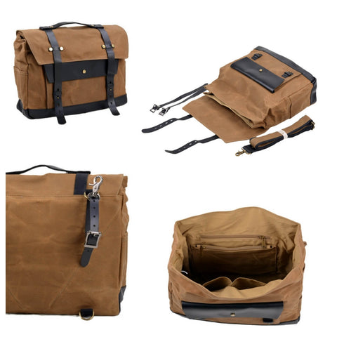 Multi-compartment design: Main pocket + exterior slots (fits 15.6" laptop or motorcycle half-helmet)