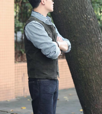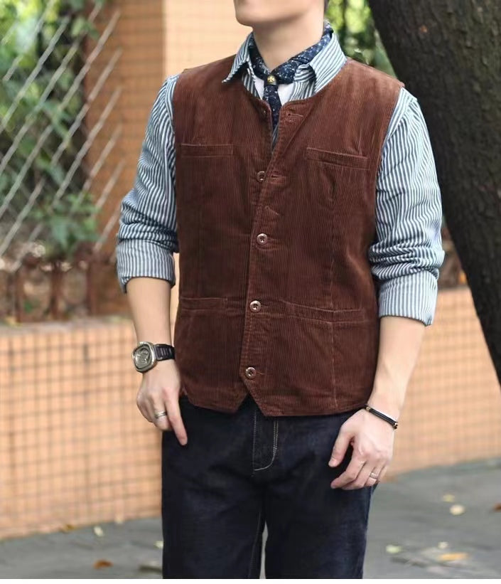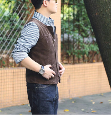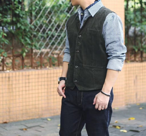 This premium corduroy vest for men features four front pockets for carrying small items and a 5-button...