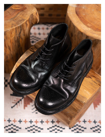 These men’s service boots are a stylish and durable choice for any occasion. The uppers, soles, and heels are all made of high-quality cowhide leather that is soft and comfortable. The plain toe design gives a sleek and elegant look, while the decorative broguing adds some flair and personality. Whether you wear them for work or leisure, these boots will make you stand out with their classic and versatile appeal.