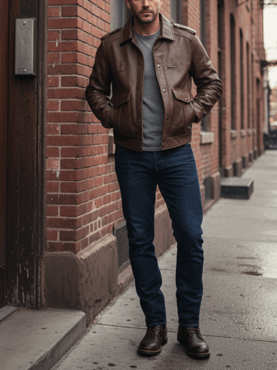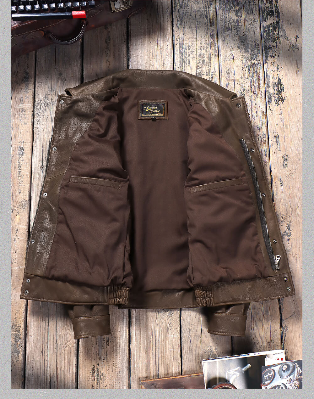Craft an authoritative presence with this Men's Chicago Police Style Riding Jacket. It is offered in two premium leathers: 1.5mm vegetable-tanned black horsehide and 1.2mm light coffee calfskin. Built to last a lifetime, it features authentic details like epaulettes, a practical double closure (exterior buttons and an interior zip), and large flap pockets.