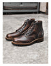 Discover the artistry of our Classic Derby Boots, featuring exquisite brush off leather from the renowned Charles F Stead tannery. This unique leather boasts layered color finishes, allowing the wearer to reveal striking undertones as the top layer naturally wears away, creating a personalized patina story.