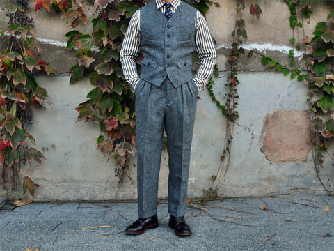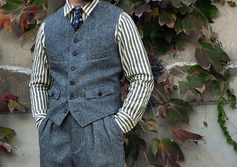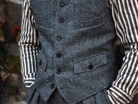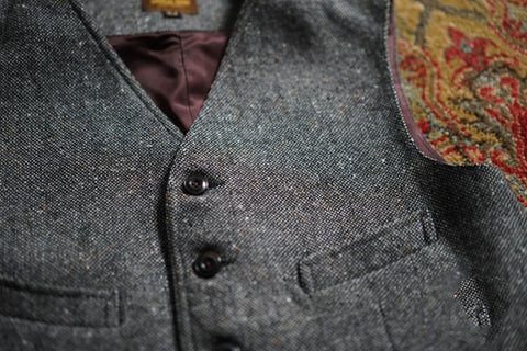 The earthy grey speckled pattern and collarless neckline give this vest a rustic character perfect for the modern urban explorer. Both functional and fashionable, it adds vintage appeal to suits and casual wear alike.