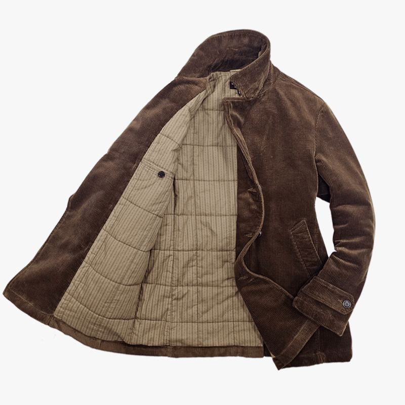 The rich texture of the corduroy adds depth, while the tailored fit ensures versatility. A refined yet casual coat perfect for staying warm and stylish throughout winter.