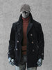 Embrace vintage workwear elegance with our black Corduroy Switchyard Coat, crafted from heavyweight 460gsm cotton corduroy that promises exceptional durability and character. The luxuriously warm wool-blend lining (20% wool, 80% polyester) provides superior insulation while maintaining breathability. Traditional notch lapels and double-breasted styling with distinctive fruit buttons create a timeless silhouette.