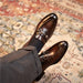 Exude timeless sophistication with our men's horsebit loafers. Crafted from premium cowhide uppers, these dress shoes are a quintessential wardrobe staple. Leather insoles mold to your feet, providing superior comfort, while durable rubber soles offer steady traction.