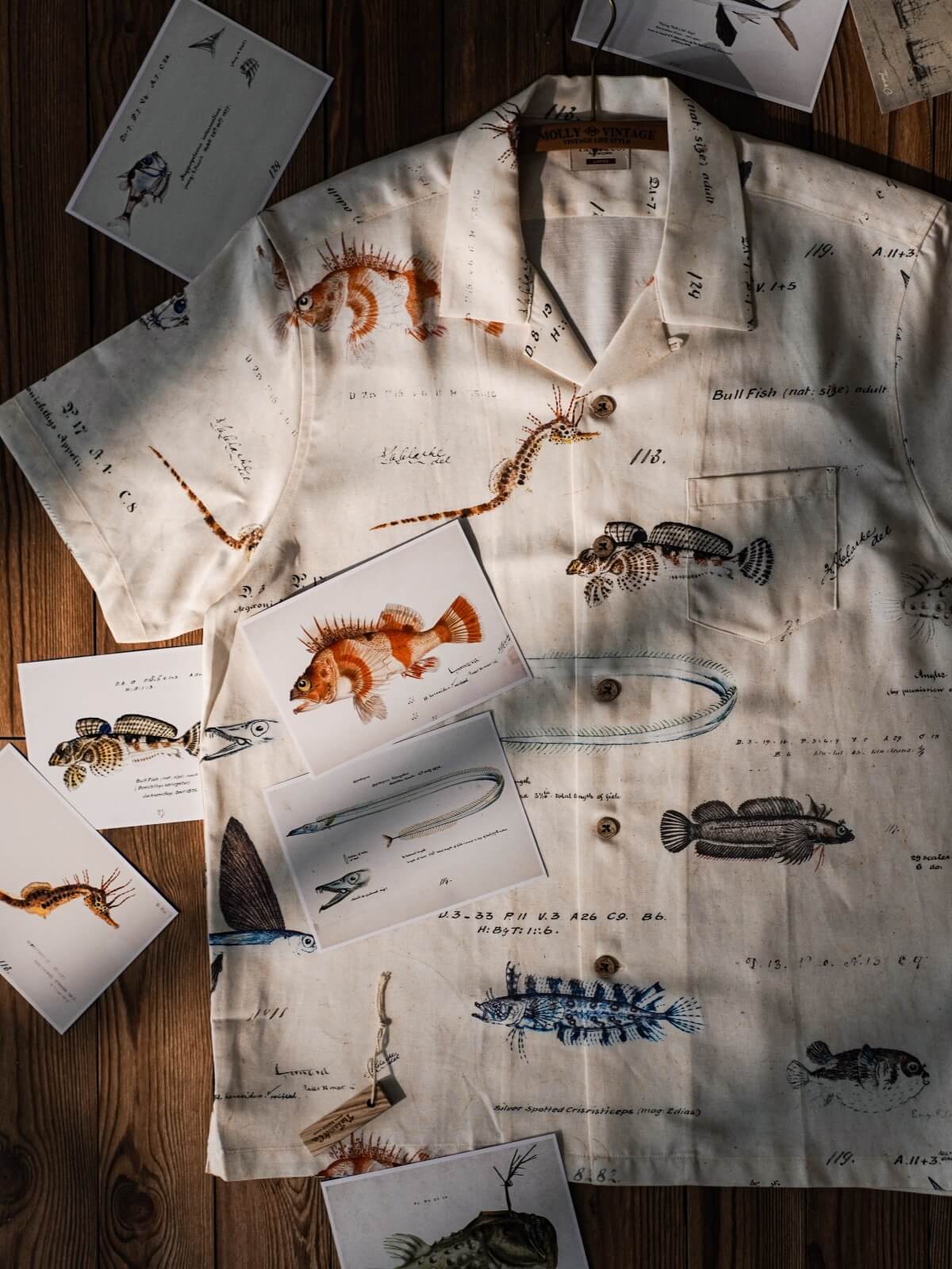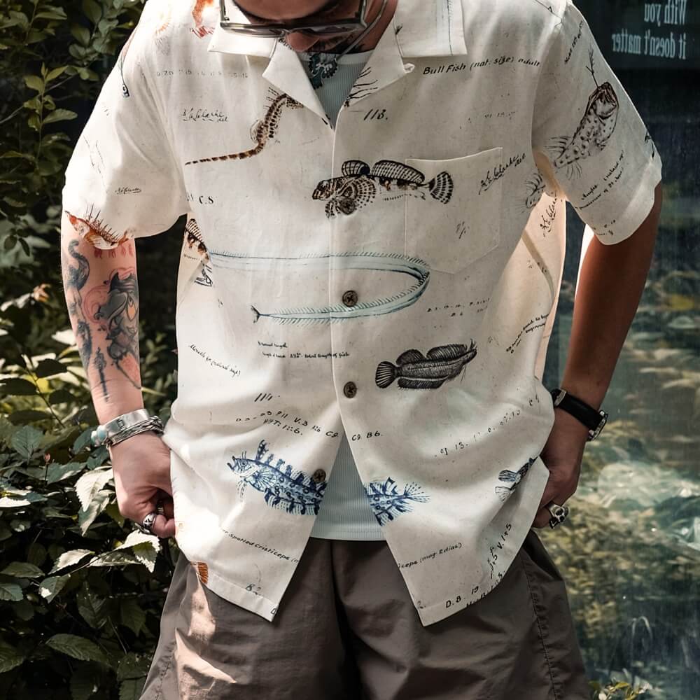 Stay cool and stylish in our Men's Fish Print Hawaiian Shirt. Made from a breathable 80% Lyocell and 20% Linen blend, this short-sleeve shirt offers a structured, crisp feel that holds its shape—never soft or flimsy.