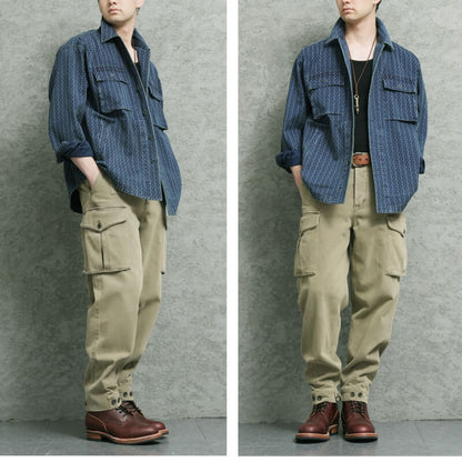 Inspired by vintage workwear, this jacket blends utility and style, making it a versatile addition to both casual and rugged outfits. Whether for layering or standalone wear, its indigo hue and structured design ensure a polished, masculine look.