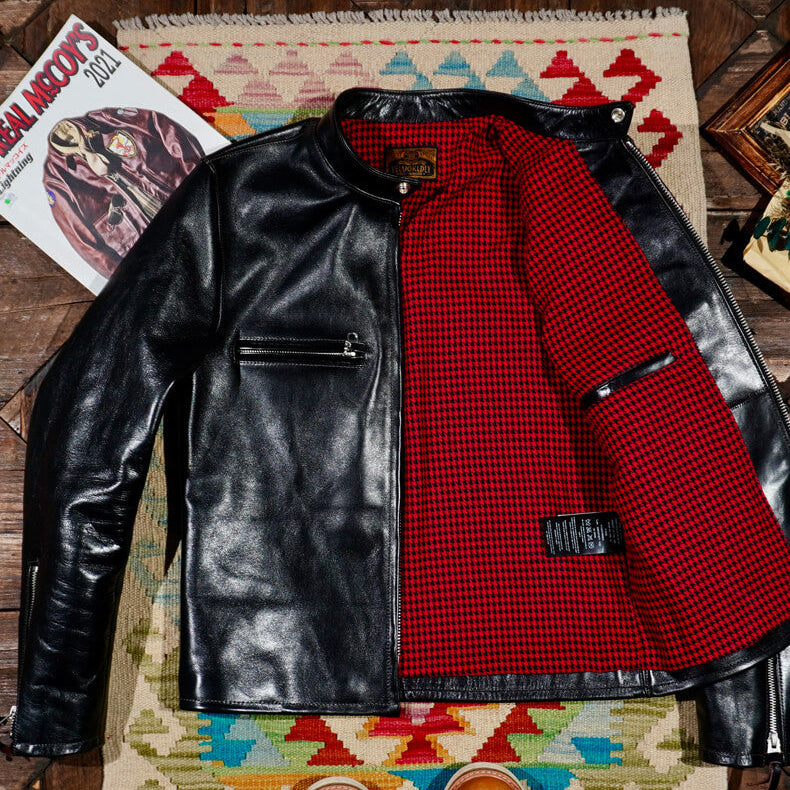 Crafted from 1.3mm Italian Cowhide/Teacore Horsehide for premium quality. Features a stand collar with button, 2 zip chest pockets, and zip cuffs. Simple classic design embodies timeless motorcycle style. This jacket offers durability and authentic biker aesthetic, perfect for riders and fashion enthusiasts alike. Combines functionality with sleek appeal for a versatile, iconic look.