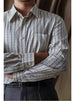 Ivy style men's beige, pure cotton long-sleeve shirt with jacquard stripes and pointed collar. Single chest pocket...