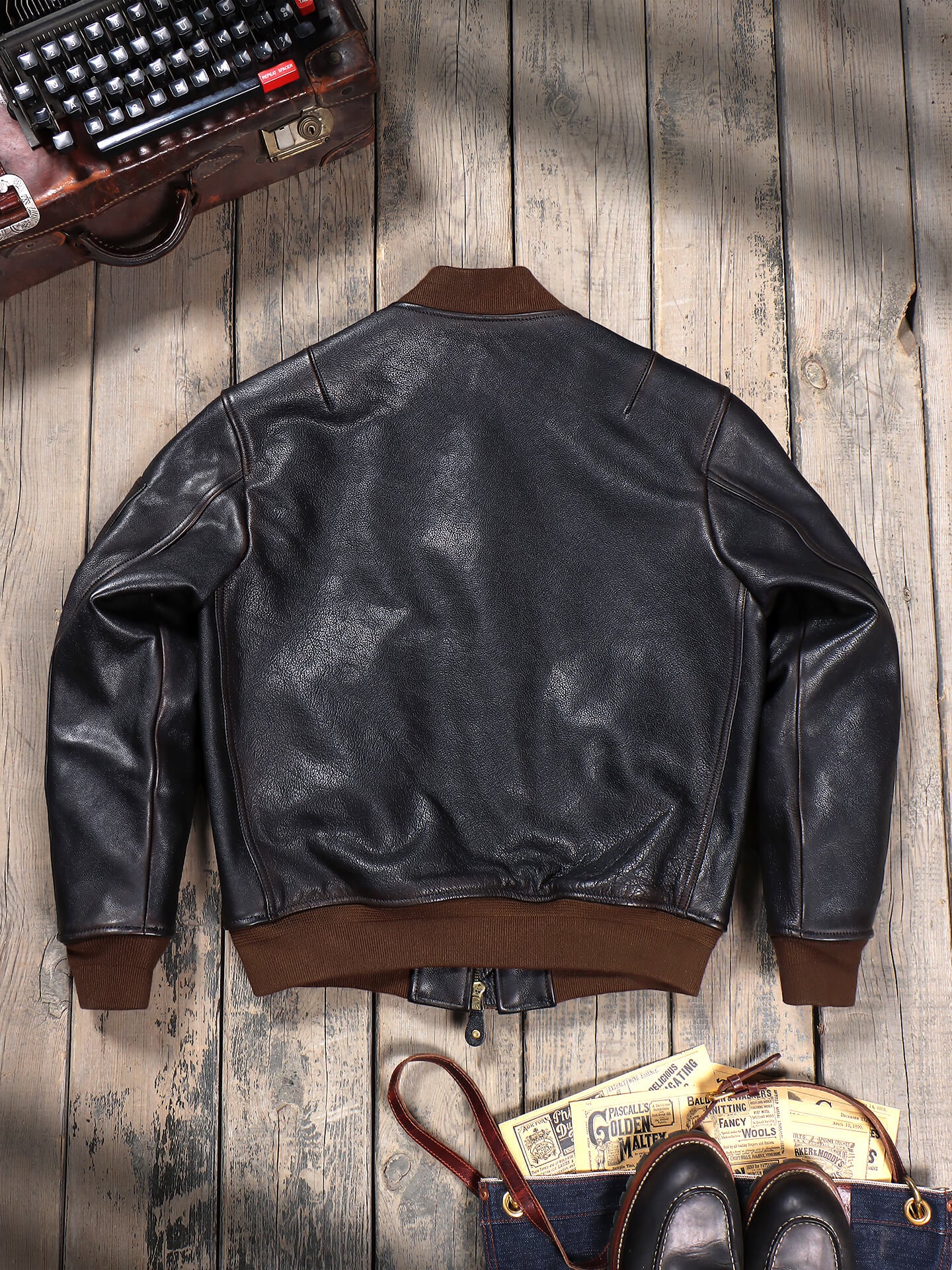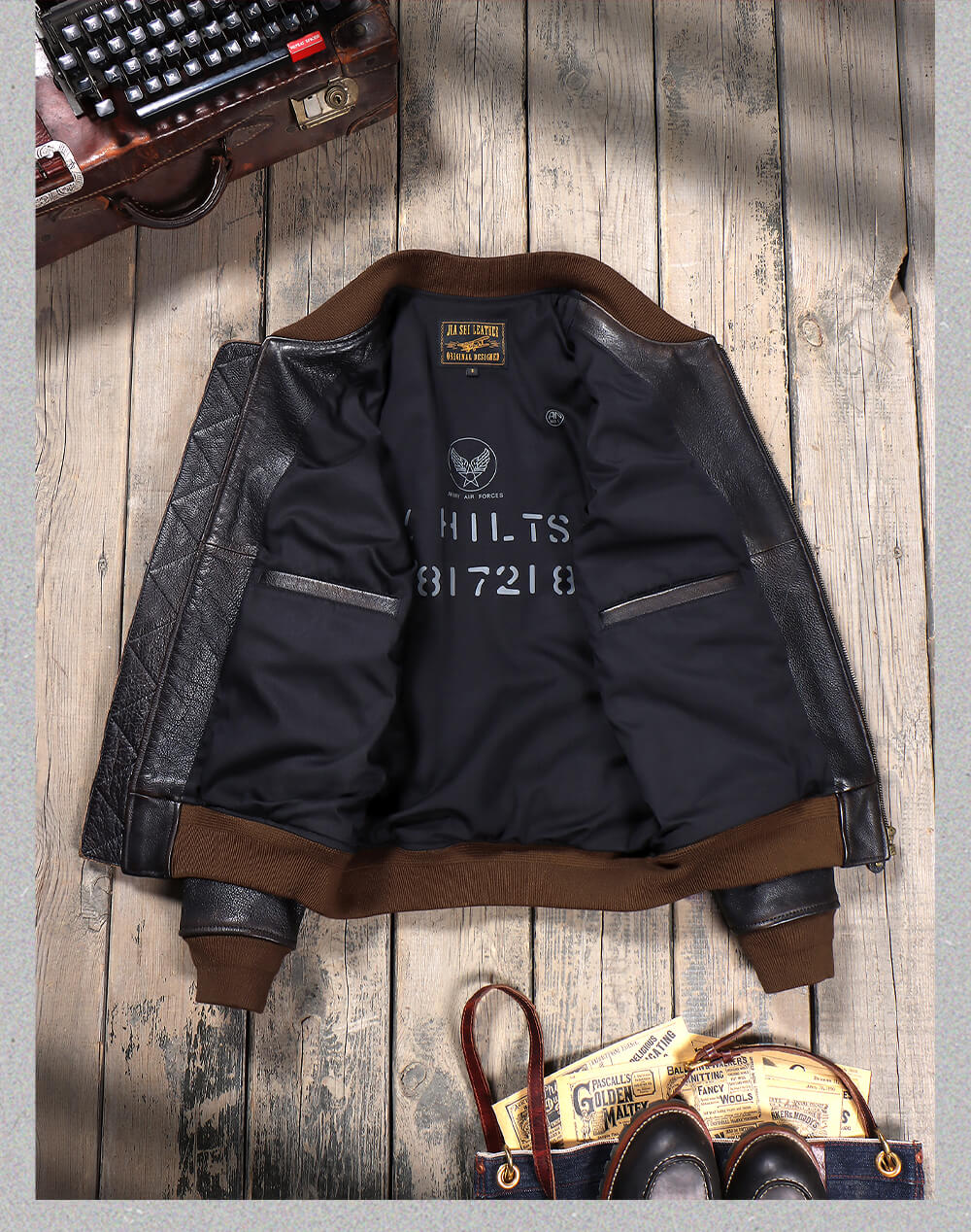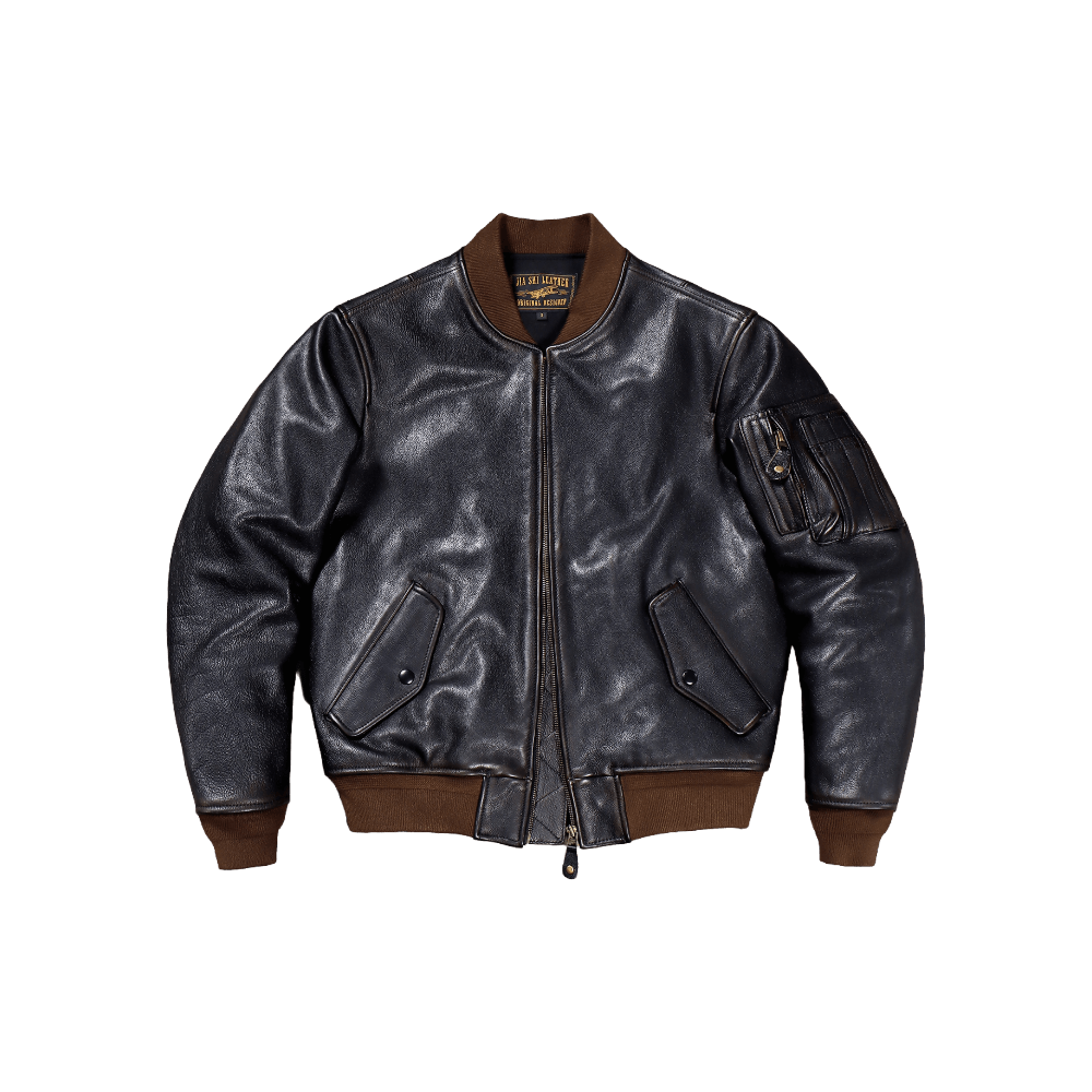 The definitive MA-1, elevated. We've re-engineered the iconic 1940s flight jacket with a sharp, slim silhouette and premium 1.4mm American teacore cowhide. Every detail, from the classic ribbed collar to the functional sleeve pocket, is executed with precision. It’s the perfect fusion of rugged military heritage and uncompromising modern style, designed to become the centerpiece of your wardrobe.