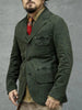 Men's military green cotton-blend safari suit blazer featuring a notch lapel collar, 3-buttons closure and snap-button chest pocket. Cut for mobility with 97% breathable cotton and 3% spandex.