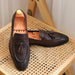 Elevate your formal attire with our men's tassel loafers. Crafted from premium cowhide uppers, these dress shoes exude sophistication. Leather insoles mold to your feet for superior comfort, while durable rubber soles provide traction. Adorned with elegant tassels, they lend a distinguished touch. Available in timeless black or rich coffee shades, these versatile loafers seamlessly transition from the office to evening affairs. Step into refined style with every stride.
