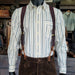 Versatile 100% cotton men's striped shirt - soft, breathable, durable. Classic single-breast design with collar, button-front, chest...
