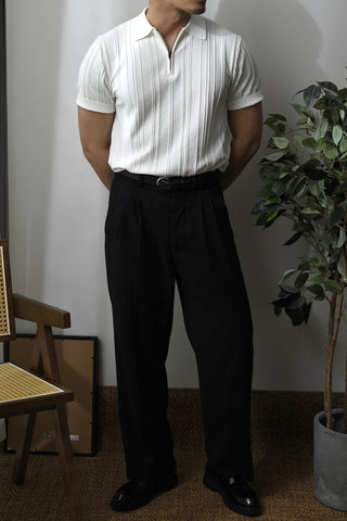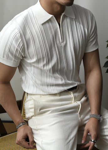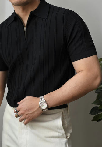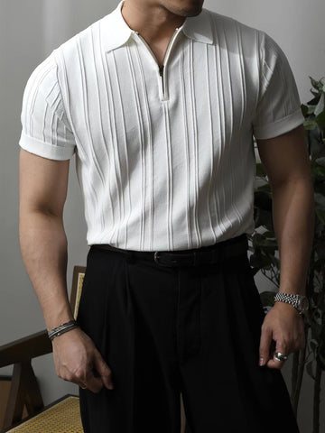 This men’s polo shirt is a stylish and versatile choice for any occasion. It features a zipper closure that allows you to adjust the neckline according to your preference. The pit stripes add a touch of contrast and sporty flair. The shirt is made of 80% viscose and 20% nylon, a blend that is breathable, soft, and comfortable. It gives you a cool feeling in summer, keeping you fresh and relaxed. Whether you pair it with jeans, shorts, or chinos, this polo shirt will make you look smart and casual.