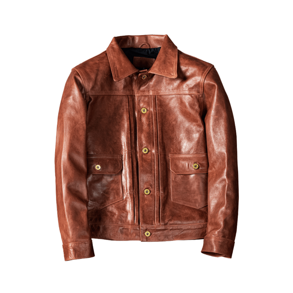 Crafted from premiumoiled cowhide, this Men’s Type II Leather Jacket in a rich red-brown hue is built for both style and longevity. Designed with rugged workwear inspiration, it features sturdy brass hardware, functional pockets, and an adjustable fit for a personalized silhouette.