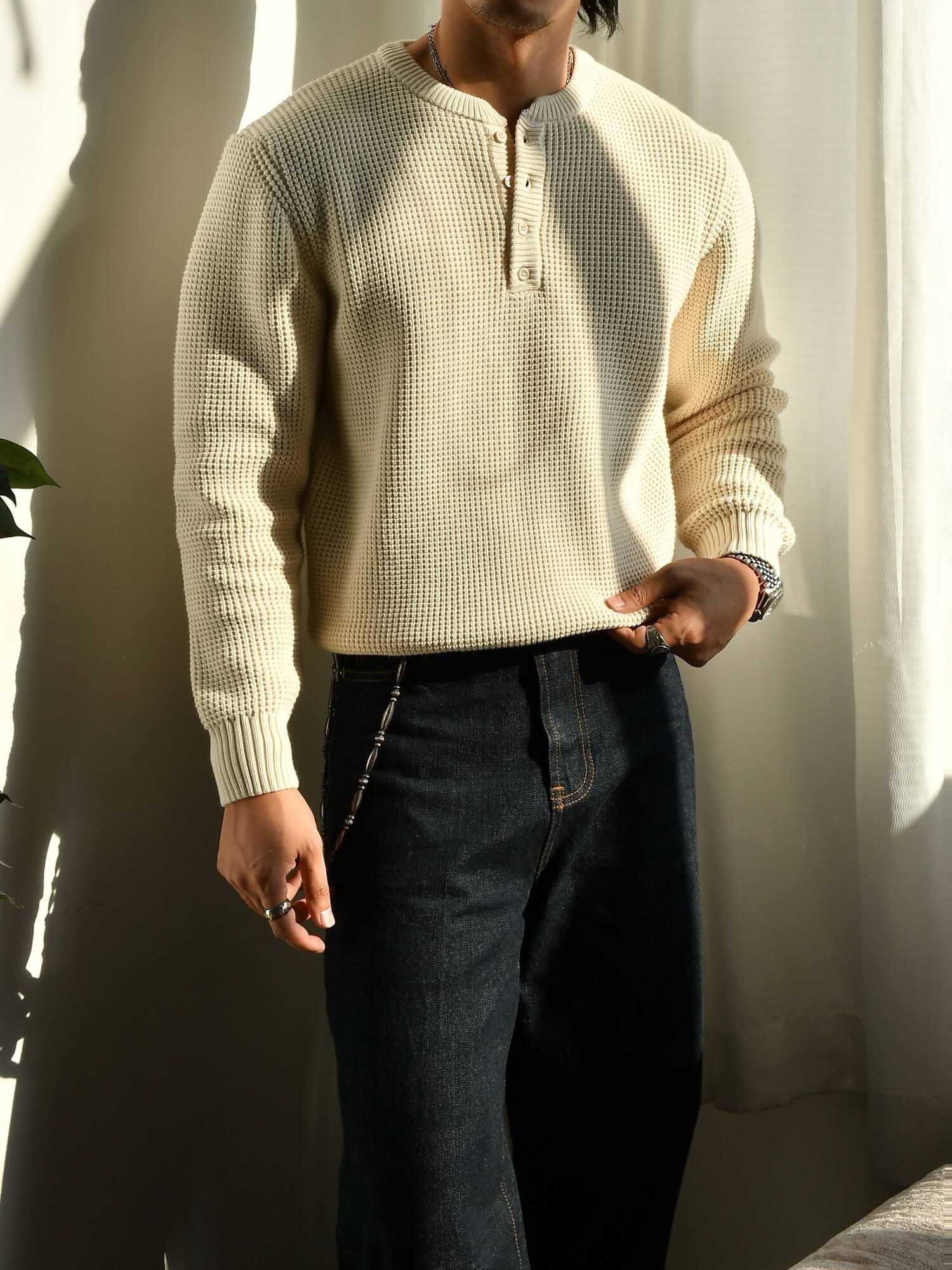 Crafted from a substantial 16.5-ounce 100% cotton waffle knit, this long-sleeve top is built for durability and exceptional warmth. The classic Henley collar with a three-button placket offers a versatile, laid-back alternative to a traditional sweater.