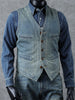 Craft from 12oz denim in light blue with classic stripes. Western workwear style meets modern comfort. V-neck design with unique palm fruit buckle closure. 4 functional pockets for ample storage. Adjustable buckleback ensures perfect fit. Washed finish adds vintage appeal.