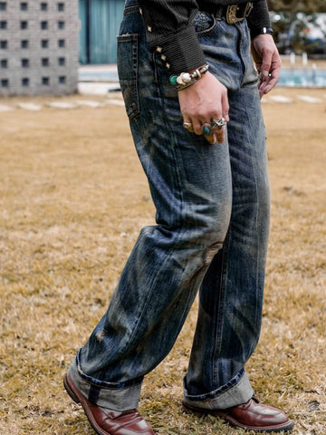 The classic mid-high waist design offers both comfort and style, while five pockets—three in front and two in back—provide ample storage true to the original workwear heritage. Each pair showcases unique wear patterns and character, making them a perfect choice for those seeking genuine American heritage style with modern comfort.